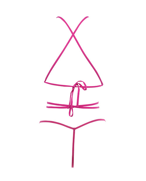 Elevate your intimate moments with the Allure Nicola Open Cup Mesh Teddy in vibrant hot pink. This stunning piece is designed to enhance your natural curves while igniting passion, making it a must-have for your lingerie collection.Crafted from delicate mesh, this teddy features daring open cups and skinny sexy straps that gracefully contour your body. The neck straps loop around for a secure fit, tying beautifully in the back, while the front straps provide an alluring wrap that accentuates your silhouette. The elastic G-string back ensures comfort without sacrificing style, making it perfect for those special occasions or simply to indulge yourself.Don’t wait for a special moment to make a statement; embrace your sensuality today. Slip into the Allure Nicola Open Cup Mesh Teddy and experience the confidence and allure it brings. Order yours now to transform your intimate wardrobe.Product Details:• Bust: 34in.-36in.• Waist: 26in.-28in.• Low Waist: 28.5in.-30.5in.• Hip: 36in.-38in.