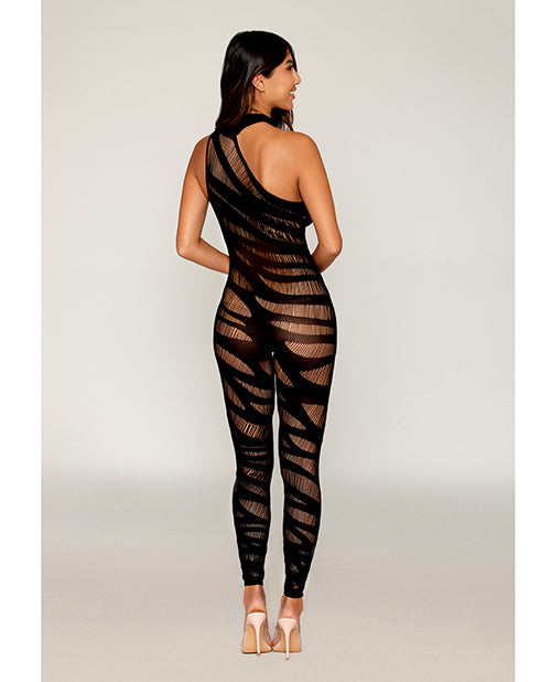 Asymmetrical Knitted Bodystocking w/Slash Design – Black O/S