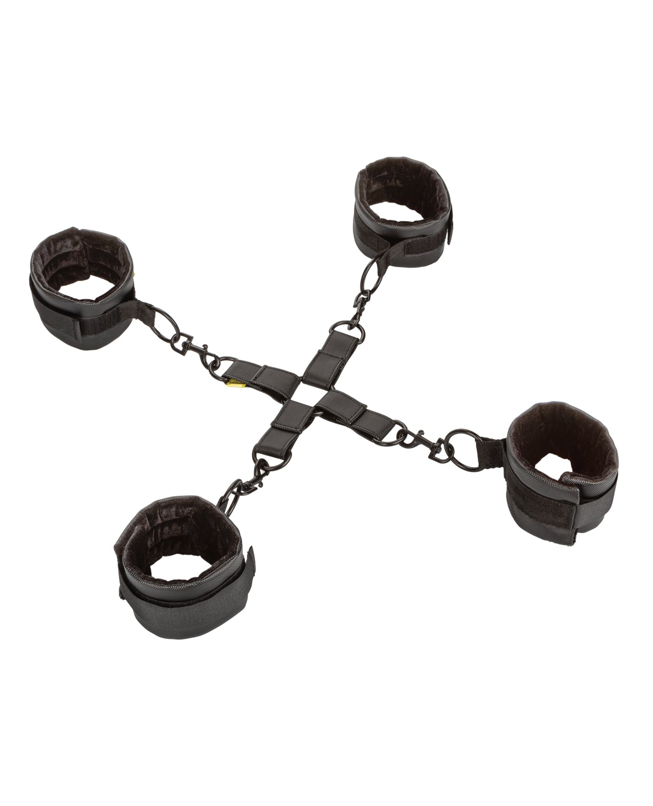 Unlock new dimensions of pleasure and power with the Boundless Hog Tie – Black. This ultimate adult toy transforms your intimate moments, allowing you to fully explore your sexual boundaries and dynamics of dominance and submission.Crafted for serious adventurers in the realm of BDSM and roleplay, the Boundless Hog Tie features robust cuffs and adjustable ties that securely bind your submissive partner. With two fully adjustable ankle cuffs and two handcuffs, all equipped with Velcro-style hook and loop fasteners, you can customize the fit for maximum comfort and security. The universal clasps and swivel design of the o-rings ensure seamless movement and versatility, amplifying the experience for both partners.Take control of your fantasies and elevate your intimate play by incorporating the Boundless Hog Tie into your collection. Embrace the thrill of total submission and unleash your creativity with this essential tool designed for both safety and excitement. Order yours today and redefine your pleasure journey.