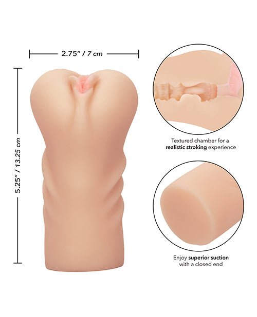 Experience unparalleled pleasure with the Cheap Thrills The First Time Pussy Masturbator in Ivory. Designed to replicate the thrill of your first intimate encounter, this product promises to elevate your solo sessions to new heights of gratification.Crafted with a super tight stroke sleeve and an intricately textured chamber, this masturbator offers a life-like sensation that will keep you coming back for more. The intact hymen design enhances the feeling of authenticity, while the closed-end structure creates exquisite suction for an intensified experience. Made from ultra-soft, stretchy Pure Skin material, this compact 5.25-inch device is not only travel-friendly but also phthalate-free and unscented, ensuring safe and enjoyable use.Don’t miss out on the ultimate pleasure experienceindulge in the Cheap Thrills The First Time Pussy Masturbator today. Elevate your intimate moments and discover why this is a must-have addition to your collection.Product Details:• 25 cm) is the teasing travel companion youre craving.