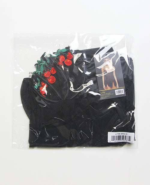 Cherry Delight Embroidered Lace and Mesh Babydoll w/Balconette Cup & Thong 2 pc Set – Black XL