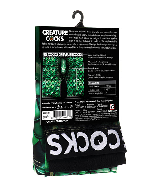 Elevate your underwear game with the Creature Cocks – Creature Wear Cockness Monster Lake Creature Boxer Shorts. Designed to turn heads, these boxer shorts blend comfort and style, ensuring you feel confident and adventurous all day long.Crafted with a vivid color palette and a striking scaly design, these boxer shorts feature a captivating monster-themed centerpiece that stands out. The tailored crotch not only enhances your silhouette but also provides a snug fit, while the breathable mesh pouch keeps you cool and comfortable. Made from stretchable fabric and equipped with a soft, supportive waistband, these shorts offer the perfect balance of support and freedom of movement.Dont let your wardrobe fall flat; take the plunge into boldness and personality with the Cockness Monster Boxer Shorts. Grab your pair today and redefine your underwear collection with a touch of myth-inspired mischief.Product Details:• Dont settle for ordinarygrab your pair today and take charge of your look.