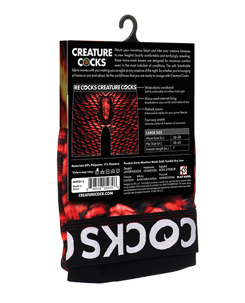 Transform your underwear game with the Creature Cocks – Creature Wear Horny Devil Demon Boxer Shorts. Designed for those who refuse to settle for ordinary, these boxers offer a striking combination of comfort and confidence that will leave you feeling like the life of the party.These boxer shorts feature an eye-catching crimson red scale pattern and a daring design on the crotch that accentuates your bulge. The breathable mesh pouch keeps you cool during even the most heated moments, while the stretchy fabric blend allows for unrestricted movement. To top it off, the soft microfiber waistband provides all-day comfort, making these boxers a perfect choice for any occasion.Don’t miss out on the chance to elevate your underwear collection. Grab your pair of Horny Devil Demon Boxer Shorts today and unleash your inner confidence.Product Details:• Say goodbye to discomfort with the breathable mesh pouch, ensuring you stay cool even during the most intense moments.