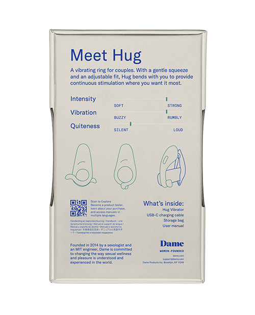 Experience intimacy like never before with the Dame Hug Vibrating Couples Ring – Steel. Designed to enhance pleasure for both partners, this innovative ring delivers targeted stimulation where it matters most, creating unforgettable moments of connection.The Hug features an adjustable fit that ensures comfort while delivering continuous vibrations that excite and delight. Its unique design allows for focused stimulation of the clitoris or perineum, making it a versatile addition to your intimate moments. Plus, the ring’s ability to help maintain stronger erections offers a non-pharmaceutical solution for those seeking enhanced performance.Don’t miss out on the chance to elevate your intimacy. Invest in the Dame Hug Vibrating Couples Ring today and explore new heights of pleasure together.Product Details:• Many hetero couples use them to provide clitoral stimulation.• 3 year warranty.