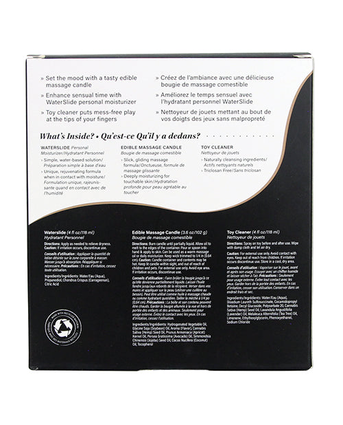 Experience unparalleled pleasure and intimacy with the Earthly Body Play & Pleasure Gift Set in delightful Watermelon. This all-in-one kit is designed to elevate your romantic escapades, providing everything you need to explore your fantasies with confidence and ease.Inside this enticing set, you’ll find the Waterslide Personal Moisturizer, a unique formula that hydrates and enhances your experience. With just four simple ingredients, it offers a long-lasting slick glide that is gentle on sensitive skin. Additionally, the 3-in-1 Edible Massage Oil adds a delicious twist, allowing you to indulge in sweet sensations while nourishing your partners skin.Dont wait to transform your intimate moments into unforgettable experiences. Purchase the Earthly Body Play & Pleasure Gift Set today and unlock a world of enjoyment that will bring you and your partner even closer together.