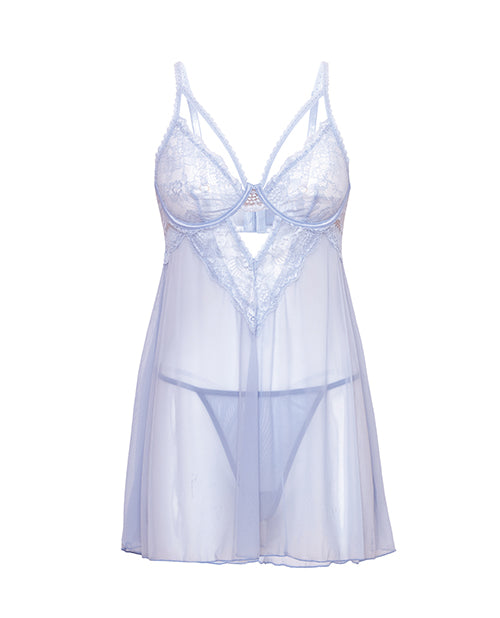 Elsie Lace & Mesh Underwire Babydoll w/G-String 2 pc Set – Brunnera Blue 1X/2X