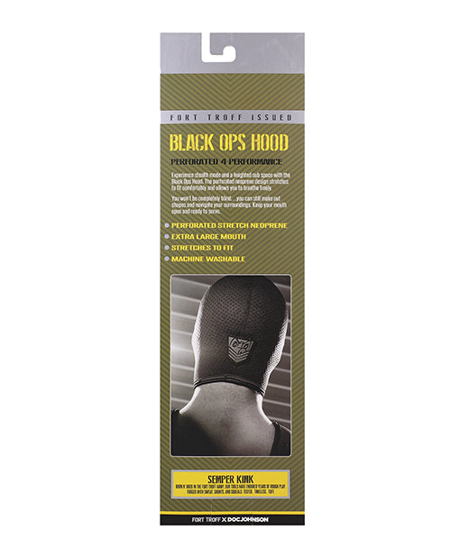 Experience the ultimate in stealth and performance with the Fort Troff Black Ops Hood. This innovative design enhances your experience while offering comfort and functionality like never before.Crafted from high-quality perforated neoprene, the Black Ops Hood stretches to fit snugly while allowing for breathability. You can navigate your surroundings effortlessly, as the hood provides limited visibility while still enabling you to make out shapes. Keep your mouth open and ready for action, ensuring that you are always prepared for whatever comes your way.Don’t miss out on elevating your performance gear. Grab the Fort Troff Black Ops Hood today and take your experience to new heights.