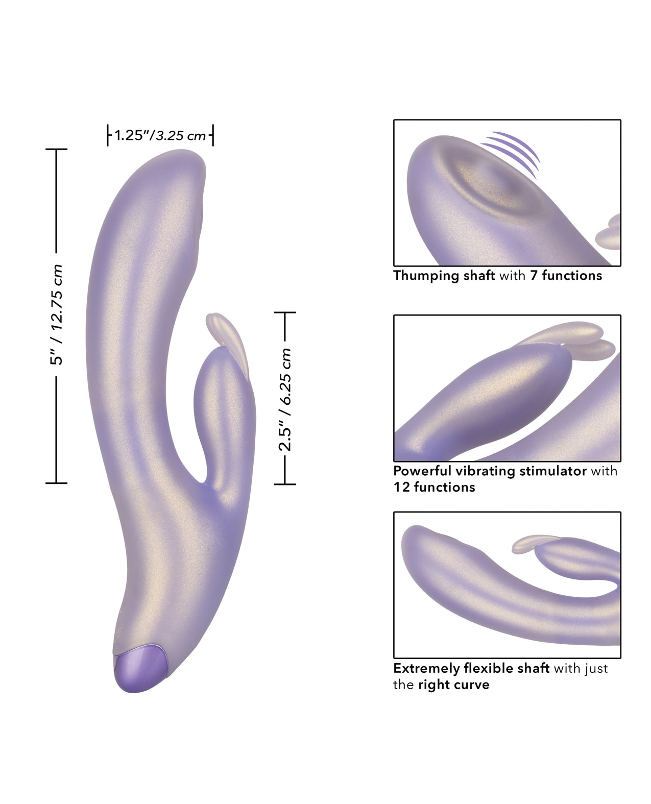 Discover the ultimate pleasure experience with the G-Love G-Bunny in Purple, designed to provide dual stimulation for unparalleled satisfaction. This luxurious massager promises to elevate your intimate moments, ensuring you love yourself just right.The G-Love G-Bunny features a flexible G shaft that adapts to your body, delivering precise stimulation where you crave it most. With 7 independent functions of thumping action combined with 12 unique vibration settings, this toy offers a customizable experience tailored to your desires. The sensually curved design and flickering rabbit stimulator expertly tease both internal and external sweet spots, while the shimmering silicone surface ensures a smooth and comfortable touch.Don’t wait to indulge in the pleasure you deserve. Elevate your self-care routine and explore the delights of the G-Love G-Bunny today. Your journey to bliss awaits.Product Details:• Love yourself just right with the flexible G shaft, 7 independent functions of thumping action and 12 independent functions of vibrations.• This silky smooth vibrator is packed with 12 functions of vibration and 7 independent functions of thumping stimulation made just for you.• Whether youre taking a dip with a lover or indulging in a steamy solo session, look forward to up to 1 hour of waterproof vibration.• Recharge pleasure and get back to playtime in only 2 hours with the provided USB cable.• This body safe material is unscented and phthalate free to keep your most sensitive spots happy and healthy.• 7.5″ x 1.5″ / 19cm x 3.75cm (Overall).• 5″ x 1.25″ / 12.75cm x 3.25cm (Shaft).• 2.5″ x 0.75″ / 6.25cm x 2cm (Stimulator).• One Year Warranty.
