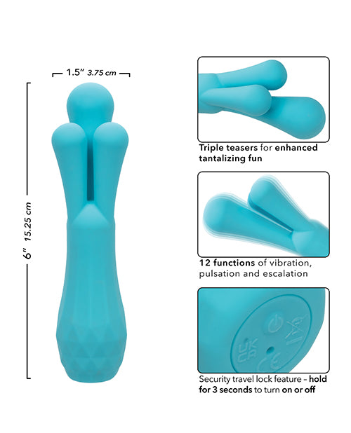 Discover unparalleled pleasure with the Gia Triple Teaser, a masterpiece designed to elevate your intimate moments. This vibrator features 3 distinct teasers, each crafted to provide maximum stimulation and enjoyment. Whether you’re exploring alone or with a partner, its 12 thrilling functions of vibration, pulsation, and escalation promise a unique experience tailored to your desires. Crafted from body-safe Silicone, the stimulator is easy to use and comfortable to maneuver. Its 100% waterproof design with an IPX7 rating ensures that it can be enjoyed in the bath, shower, or any wet environment, adding versatility to your pleasure pursuits. The sleek, smooth texture enhances the sensations, making every touch more exciting. Convenience is key with this state-of-the-art massager. A sophisticated memory chip remembers your last used setting, allowing you to resume the fun right where you left off. Additionally, the security travel lock feature ensures that your Triple Teaser remains discreetly inactive during travel – simply hold the button for 3 seconds to lock or unlock. The Gia Triple Teaser is USB rechargeable, including a charging cord that completes the charge in just 1.25 hours. Whether you opt for the robust 40 minutes of high-speed action or a prolonged 55 minutes on a gentler setting, this toy adapts to your pace and preference, ensuring that no session is cut short before reaching the peak of pleasure.