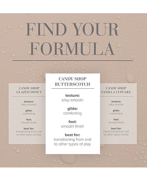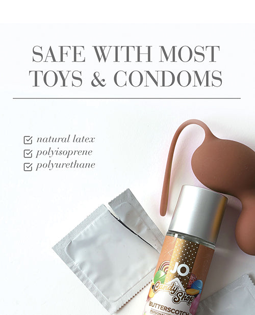 Indulge your senses with JO Candy Shop – Butterscotch Lubricant, a delightful addition to your intimate moments. This luscious, water-based lubricant enhances pleasure while providing a sweet, buttery flavor that elevates every experience.Crafted with the highest quality ingredients, this 2 oz bottle features a unique water-based formula that ensures no unpleasant aftertaste. Made from sustainably sourced, plant-based glycerin, it offers a smooth glide that enhances comfort and pleasure. The addition of potassium sorbate as a preservative ensures your lubricant stays fresh and safe for use.Transform your intimate encounters and savor the rich flavor of butterscotch. Elevate your pleasure today by adding JO Candy Shop – Butterscotch Lubricant to your collection.