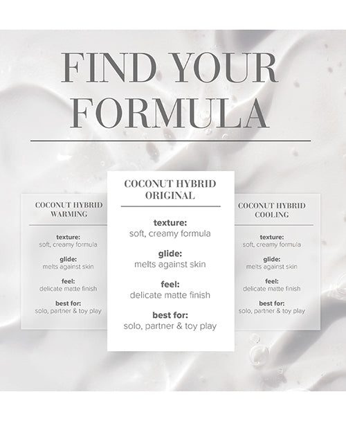Experience the ultimate in sensual pleasure with JO Coconut Hybrid – Original Lubricant. This luxurious blend of premium coconut oil and water-based ingredients provides an incredibly smooth glide that enhances intimacy and elevates your encounters to new heights.JO Coconut Hybrid boasts a unique, soft, and creamy formula that melts effortlessly into the skin, making it ideal for solo play, partnered experiences, and the use of toys. The nourishing properties of Cocos Nucifera (Coconut) Oil not only enhance your pleasure but also provide natural moisturization, leaving your skin feeling soft and cared for. Unlike traditional lubricants, it absorbs without leaving a greasy or oily residue, ensuring a delightful experience each time.Don’t settle for less when it comes to your intimate moments. Elevate your pleasure and indulge in the soothing benefits of JO Coconut Hybrid – Original Lubricant today!