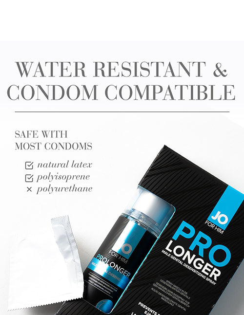 Unlock a new level of intimacy with JO Prolonger Spray, your go-to solution for enhanced pleasure and lasting moments. This powerful Benzocaine desensitizer helps to prolong intimacy by effectively slowing the onset of ejaculation, allowing for a more satisfying experience for both partners.Formulated with a maximum strength of 7.5% Benzocaine, JO Prolonger Spray is a fast-acting, water-based solution that dries quickly and is easy to apply. With its quick onset of action, you can expect results within 15-20 minutes, helping you achieve the intimate connection you’ve been seeking. Please note that this product is not compatible with polyisoprene condoms, ensuring that you enjoy a safe and pleasurable experience.Take control of your intimate moments today. Experience the benefits of JO Prolonger Spray and elevate your relationship to new heightsbecause lasting pleasure is just a spray away.Product Details:• JO Prolonger Benzocaine takes effect quickly and duration is estimated at 15-20 minutes.