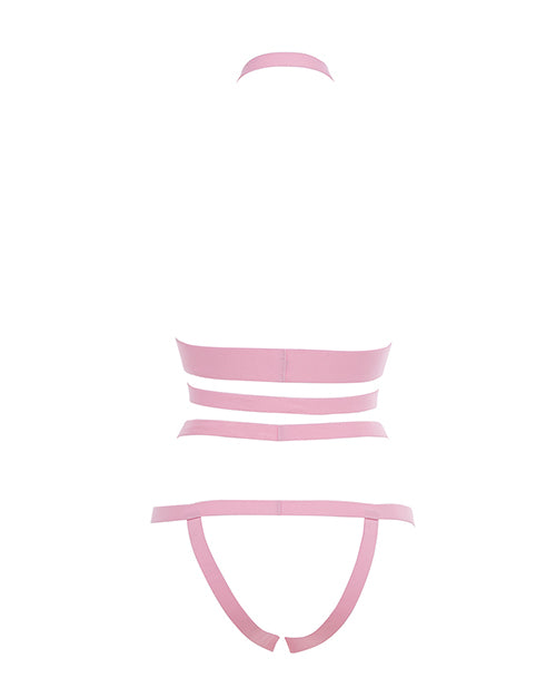 Kitten It’s Complicated Open Elastic Strappy Bra & Open Back Panty Pink O/S