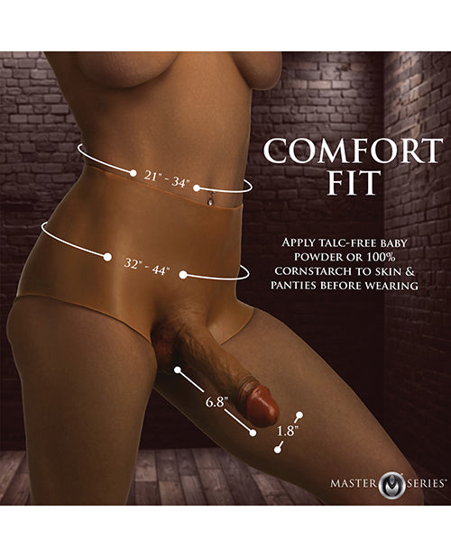 Experience a thrilling new dimension of pleasure with the Master Series Penis Panties – Large, Tan. Designed to elevate your intimate encounters, these innovative silicone panty-shorts allow you to embrace your wildest fantasies and kinks while enjoying the comfort and allure of gender-affirming wear.Crafted from stretchy, phthalate-free silicone, these panties feature a large, poseable dildo complete with realistic balls, giving you the ability to position it just right for your partner’s pleasure. The lifelike appearance and feel enhance the immersive experience, while the strategically placed anal opening allows for additional stimulation without the need to remove the panties. Be sure to measure your hips and waist to ensure a snug and pleasurable fit.Dont miss out on the chance to transform your intimate life. Spice up your nights and explore new sensations with the Master Series Penis Panties order yours today and take the first step towards an unforgettable adventure.