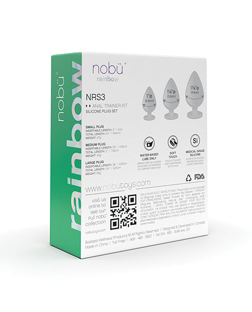 Experience unparalleled pleasure with the Nobu Rainbow Silicone Plug Set in vibrant green. Designed for both comfort and excitement, this set allows you to explore new sensations, enhancing your intimate moments with style.Crafted from body-safe, soft-touch silicone, each plug in the Nobu set features a strong suction cup for secure placement and versatile use. The lightweight design ensures ease of handling, while the waterproof and non-porous materials make cleanup a breeze. Each plug is harness compatible and available in various sizes, shapes, and colors, giving you the freedom to choose the perfect fit for your desires.Don’t wait to elevate your pleasure experience. Discover the joys of the Nobu Rainbow Silicone Plug Set today and bring a splash of color and excitement to your intimate adventures.Product Details:• Key Features: Strong Suction Cup.• Waterproof.