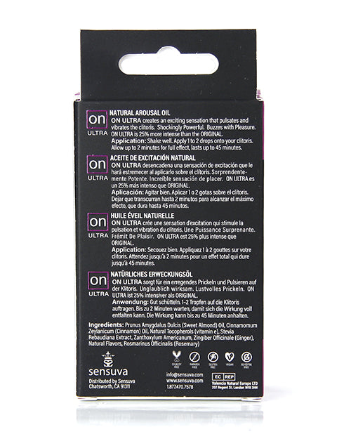 Experience the ultimate in pleasure with ON Ice Buzzing & Cooling Female Arousal Oil. This powerful arousal oil heightens sensitivity and intensifies arousal, providing an exhilarating sensation that transforms intimate moments into unforgettable experiences.Crafted from an original blend of all-natural essential oils and extracts, this 5 ml bottle delivers a unique cooling effect that pulsates and tingles upon application. Designed specifically for the clitoris, ON Ice enhances lubrication and amplifies pleasure, making it an essential addition to any intimate routine. Its compact size ensures you can take it anywhere, ready for spontaneous moments of excitement.Don’t miss out on elevating your sensual experiences. Add ON Ice Buzzing & Cooling Female Arousal Oil to your collection today and discover the pleasure waiting for you.Product Details:• ON ICE even makes most women feel as though they are lubricating more.• 5ml bottle.
