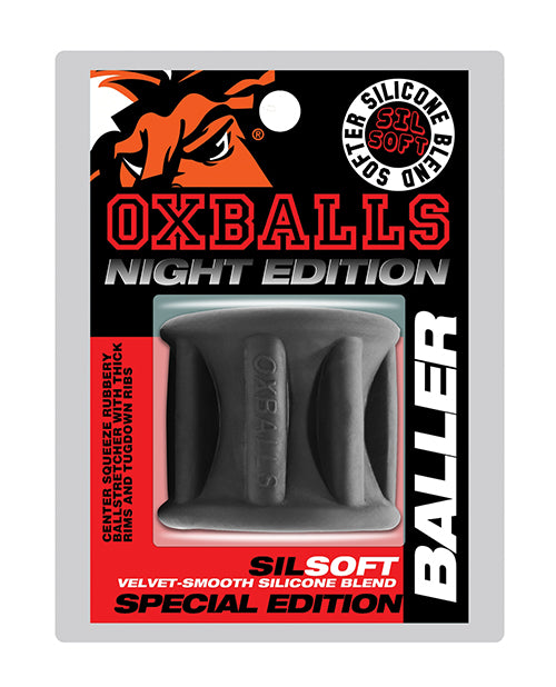 Experience ultimate pleasure and support with the Oxballs Baller Center Squeeze Ball Stretcher – Special Edition Night. This innovative design takes your playtime to new heights, offering an unparalleled sensation that enhances your experience.Crafted from the unique SILSOFT SILICONE blend, the Baller Center Squeeze features a smooth, velvet-black finish that feels luxurious against the skin. Its hourglass shape and eight super-stretch outer ribs provide a firm yet comfortable grip, allowing for maximum push-down stretch and support for lower-hanging sacks. This special edition is not only taller and wider than its predecessors, but it also amplifies the pleasurable tugging sensation, making it perfect for those who crave deeper stimulation during their most intimate moments.Don’t miss out on elevating your pleasure with the Oxballs Baller Center Squeeze Ball Stretcher. Order now and discover the thrilling sensations that await you.