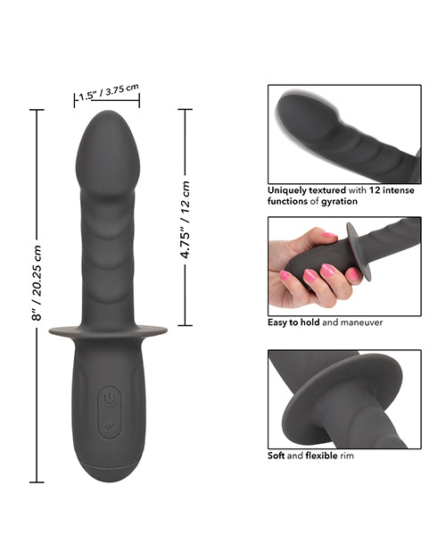 Experience unparalleled pleasure with the Ramrod Gyrating. This innovative toy combines a gyrating action with a uniquely textured shaft to deliver intense sensations that will leave you breathless.Equipped with 12 powerful functions of vibration, pulsation, and escalation, the Ramrod Gyrating offers a customizable experience tailored to your desires. Crafted from body-safe silicone, this probe guarantees a smooth and enjoyable touch, while its waterproof design, rated IPX7, allows for adventurous play in the shower or bath. Whether you prefer gentle teasing or powerful stimulation, the Ramrod Gyrating has the versatility to meet your needs.Elevate your pleasure game and explore new heights of satisfaction with the Ramrod Gyrating. Dont miss out on the chance to transform your intimate momentsorder yours today and indulge in the ultimate experience.Product Details:• Featuring 12 intense functions of vibration, pulsation, and escalation, you have a variety of options to explore and find the perfect mode for your pleasure.• It is also waterproof and submersible up to IPX7 standards, allowing you to indulge in wet and wild adventures.• No need to worry about batteries as the probe is USB rechargeable.• The charging cord is included, and in just 1.5 hours, you’ll have a complete charge, offering 60 minutes of high-speed excitement and 100 minutes of low-speed enjoyment.