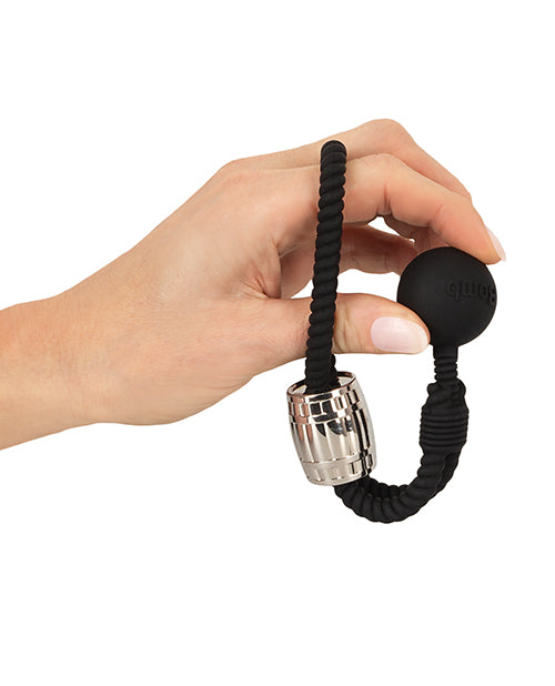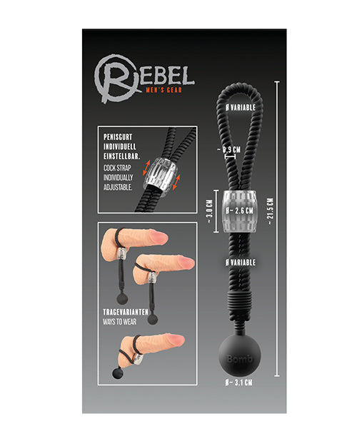 Experience heightened pleasure and control with the Rebel Heavy Rope Cock Lasso w/Ball in sleek black. This innovative lasso not only enhances your arousal but also promotes stronger, longer-lasting erections for an unforgettable intimate experience.Crafted with a robust design, this penis and ball loop features a heavy rope construction and an elegant metal sliding weight, ensuring both durability and style. Weighing a total of 166 grams, the adjustable strap allows for a customized fit, enhancing blood flow retention for maximum performance. The stretchy silicone loop can be comfortably worn around the penis, the balls, or both, giving you the versatility to explore different sensations with ease.Elevate your intimate moments and take control of your pleasure today. Dont miss out on the chance to redefine your experience with the Rebel Heavy Rope Cock Lasso w/Ball; order now and feel the difference.Product Details:• A restraining lasso for the penis and/or balls!Black, robust penis/ball loop, the Heavy Rope Cock Strap with Ball, by Rebel, features a rope design with an elegant metal sliding weight and an additional ball weight (total weight 166 g).