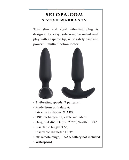Experience the ultimate in pleasure with the Selopa Black Beauty – Black, the slim and rigid vibrating plug that elevates your intimate moments to new heights. Designed for effortless remote-control anal play, this innovative device ensures safety and satisfaction with every use.The Selopa Black Beauty features a tapered tip for easy insertion and a wide safety base that keeps your explorations worry-free. Its powerful multi-function motor delivers exhilarating vibrations, allowing you to customize your experience for maximum enjoyment. Crafted with high-quality materials, this plug is both body-safe and durable, making it a reliable addition to your collection.Dont miss out on the chance to explore new dimensions of pleasure. Order your Selopa Black Beauty – Black today and unlock a world of excitement at your fingertips.
