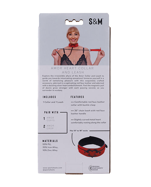 Experience a new level of intimacy and connection with the Sex & Mischief Amor Collar and Leash, designed to enhance your most passionate moments. This alluring accessory invites you to explore the intoxicating sensations of surrender and control, igniting desire like never before.Crafted from luxurious red vegan leather, the Amor Collar and Leash not only captivates the eye but also provides comfort and durability. Its striking silver heart embellishment adds a touch of elegance, making it a perfect addition to your intimate collection. Adjustable for the perfect fit, this collar empowers you to take charge of your pleasure while embracing your deepest fantasies.Don’t miss the chance to elevate your experience and embrace your wild side. Add the Sex & Mischief Amor Collar and Leash to your cart today and unlock a world of tantalizing exploration.