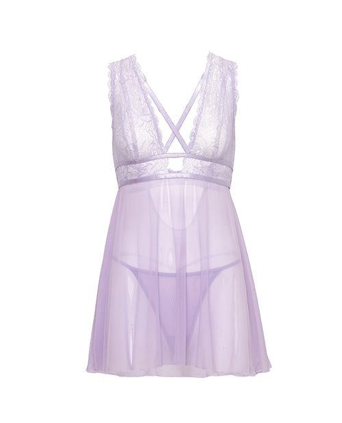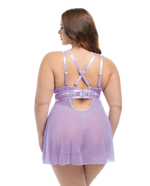 Stassi Lace & Mesh Babydoll w/G-String 2 pc Set – Lavender 1X/2X