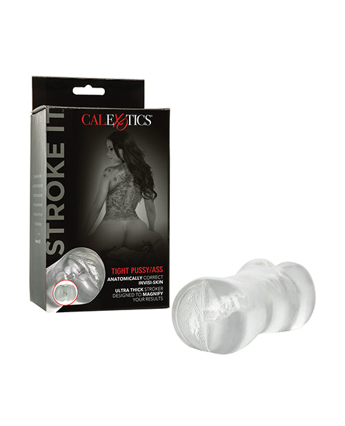 The Stroke It collection brings you the Tight Pussy and Ass stroker sleeve meant to thrill with your favorite stroking options; Dive deep into over 1 pound of heavy-duty stroking pleasure with two entry options and an ultra-tight textured chamber. The plush double-ended stroker gives you the best of both worlds with two realistic entry options. No matter which side you choose, the ultra-tight textured chamber creates a wonderland of pleasure for any member willing to slip inside. The indulgent stroker has a textured, anatomically correct chamber for explosive stimulation. Use this close-ended sleeve with ample lubrication for powerful suction worthy of your naughtiest fantasies. Invisi-Skin Thermoplastic Elastomer is a super-soft, ultra stretchy material with a unique, life-like feel delivering pure satisfaction in every stroke. This durable sleeve is easy-to-use, easy-to-clean and requires no special care. Prior to and after each use, wash sleeve internally and externally with warm water and soap.