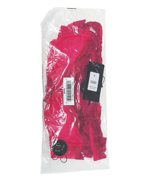 Yvone Lace Bra w/Removable Straps, Garter & Tanga Panty 3 pc Set – Pink LG