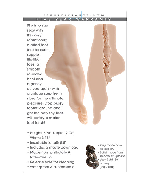Experience the ultimate satisfaction with the Zero Tolerance Pussy Footin Masturbator – Light, designed for those who crave an incredibly realistic encounter. This innovative toy delivers unparalleled pleasure, combining the allure of a foot fetish with the thrill of intimate exploration.Crafted with attention to detail, this masturbator features lifelike toes, a smooth rounded heel, and a gently curved arch, all designed to tantalize your senses. The unique surprise embedded within enhances the experience further, ensuring that every use is memorable. Slip into a world of sensual delight and indulge your fantasies with this expertly crafted product.Don’t wait any longer to elevate your pleasure. Embrace your desires and order the Zero Tolerance Pussy Footin Masturbator – Light today for an unforgettable experience that will satisfy your deepest cravings.
